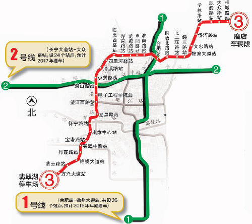 線路起于方興大道站,止于相城路站,全長37.2公里,北端采用高架敷設(shè),高架線路長4.23公里,其余均為地下線,地下線長32.97公里。線路經(jīng)由肥西縣以及合肥市經(jīng)開區(qū)、政務(wù)新區(qū)、蜀山區(qū)、廬陽區(qū)、瑤海區(qū)、新站區(qū)等區(qū)域,為西南東北走向線路。